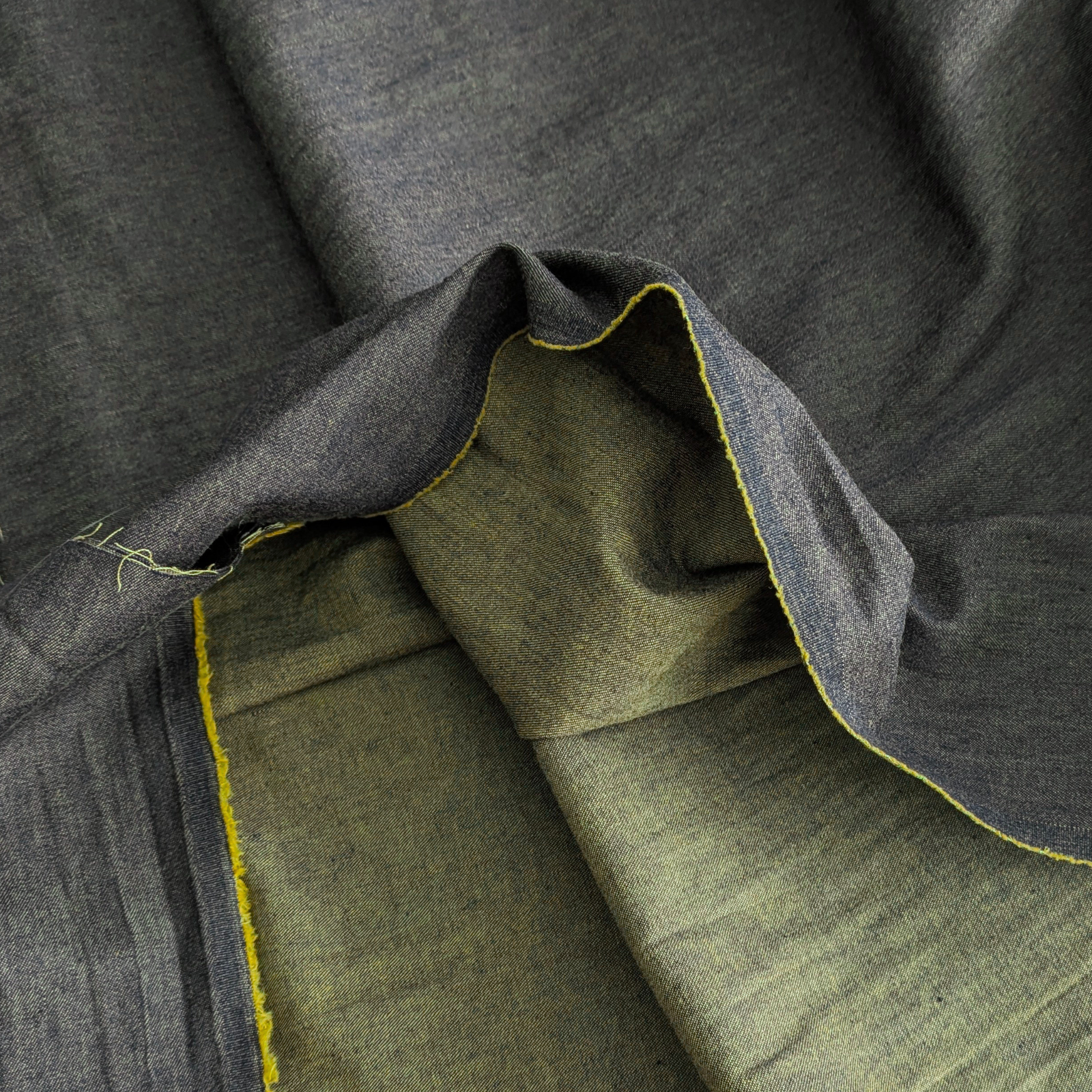 Cotton Chambray Fabric, Yarn Dyed, Blue & Yellow, 140cm Wide. This soft cotton chambray has a light drape and the combination of colours gives the fabric a blue-grey hue.