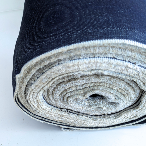 Indigo Blue Denim. A heavy weight rigid denim fabric, ideal for dressmaking. This is a quality cotton denim fabric. Perfect for dressmaking and sewing – this premium material is available by the half metre.