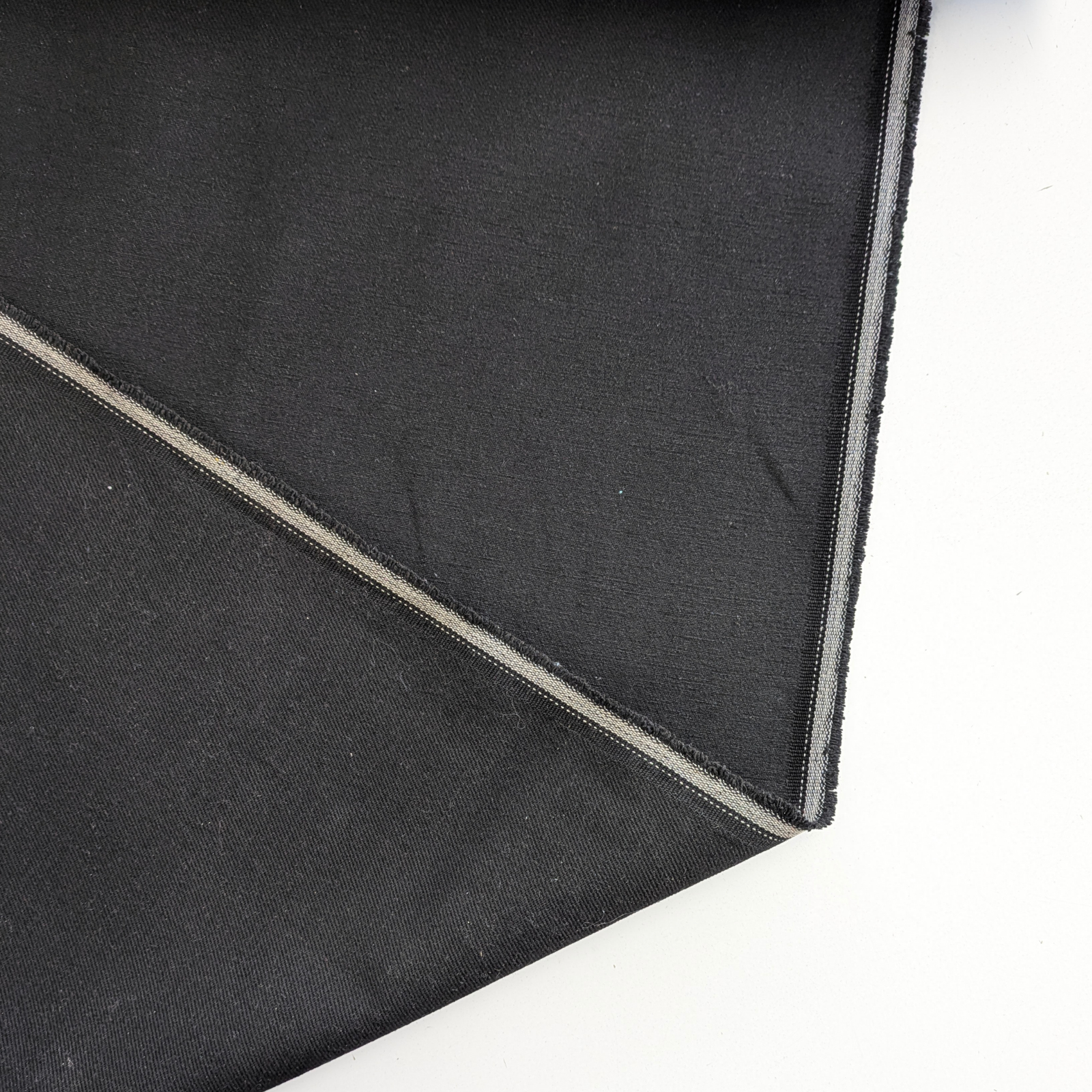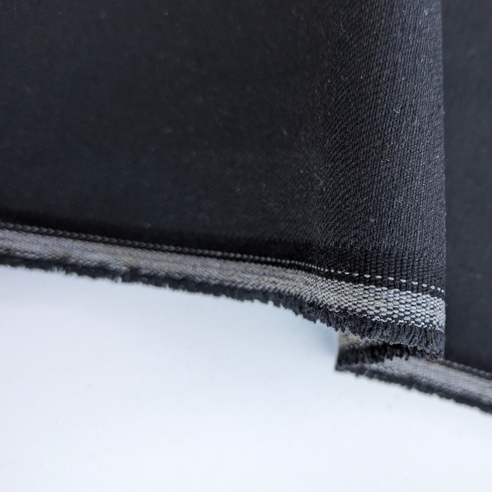Jet Black Denim. A heavy weight rigid denim fabric, ideal for dressmaking. This is a quality cotton denim fabric. Perfect for dressmaking and sewing – this premium material is available by the half metre.