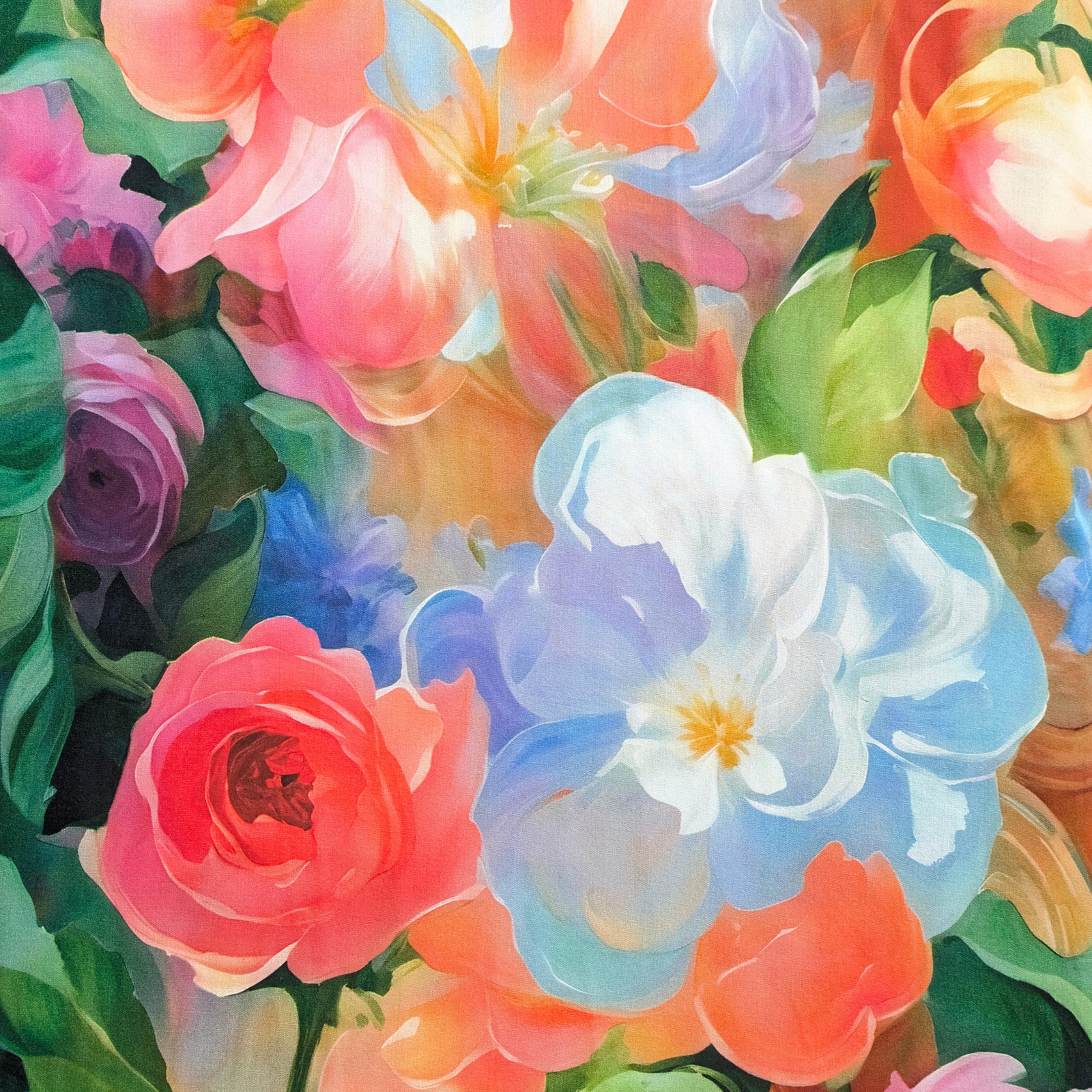 100% Viscose Fabric Large Floral Blooms Digital Print