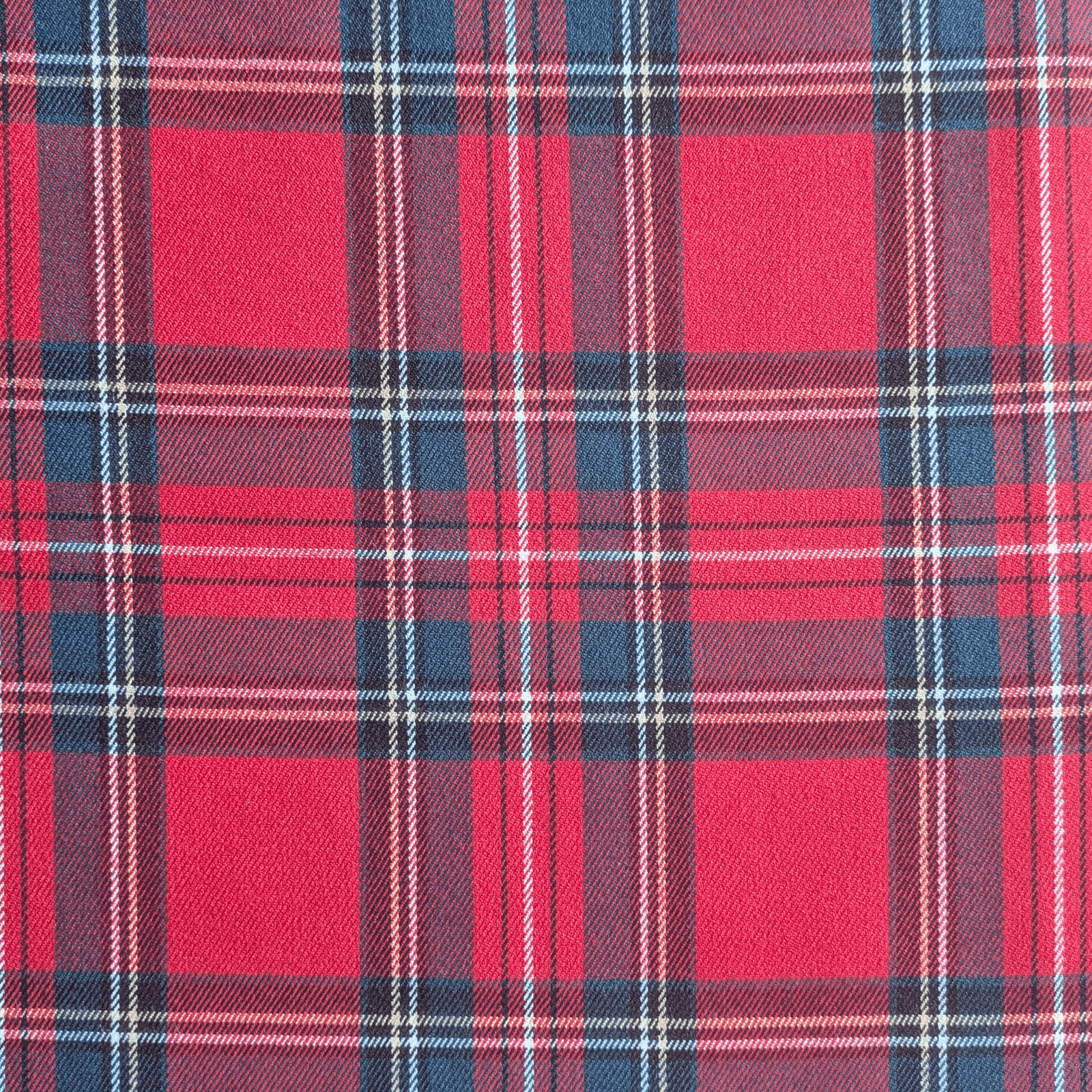 Red Tartan Check. A fantastic polyester, viscose, elastane tailoring fabric. Large red tartan check pattern, ideal for making skirts, jackets etc.