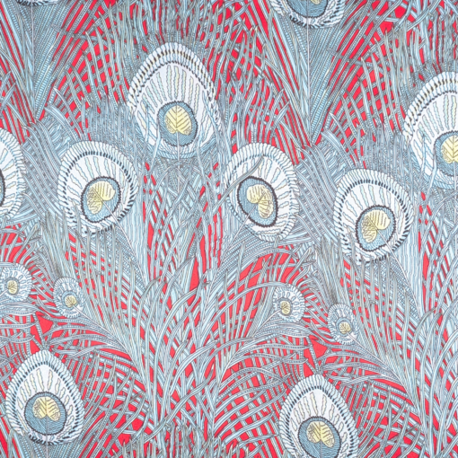 Silk Satin 16 Momne Peacock Feathers On Red 140cm Wide