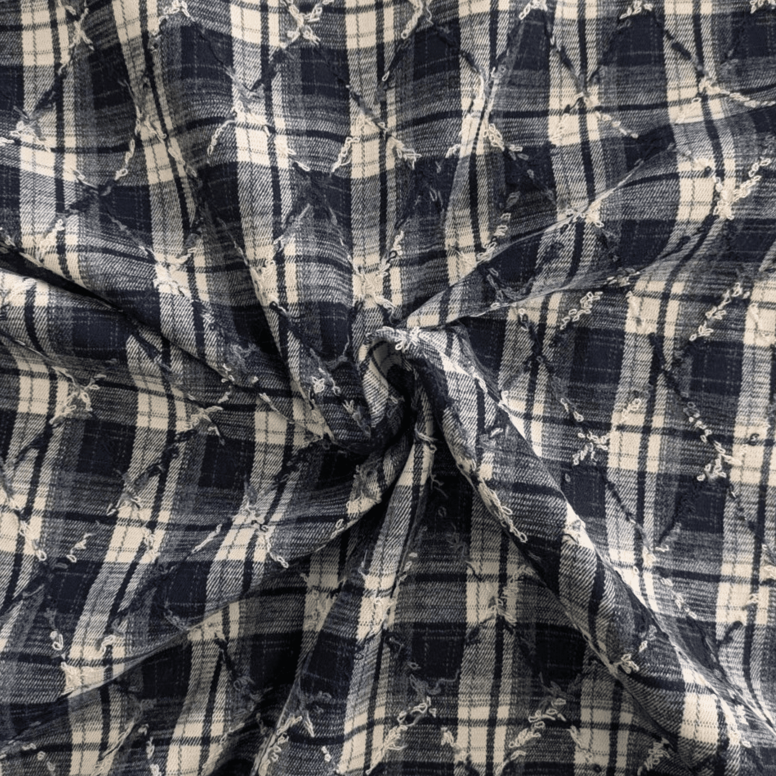 Yarn Dyed Checks In Navy & Cream Poly Viscose Fabric