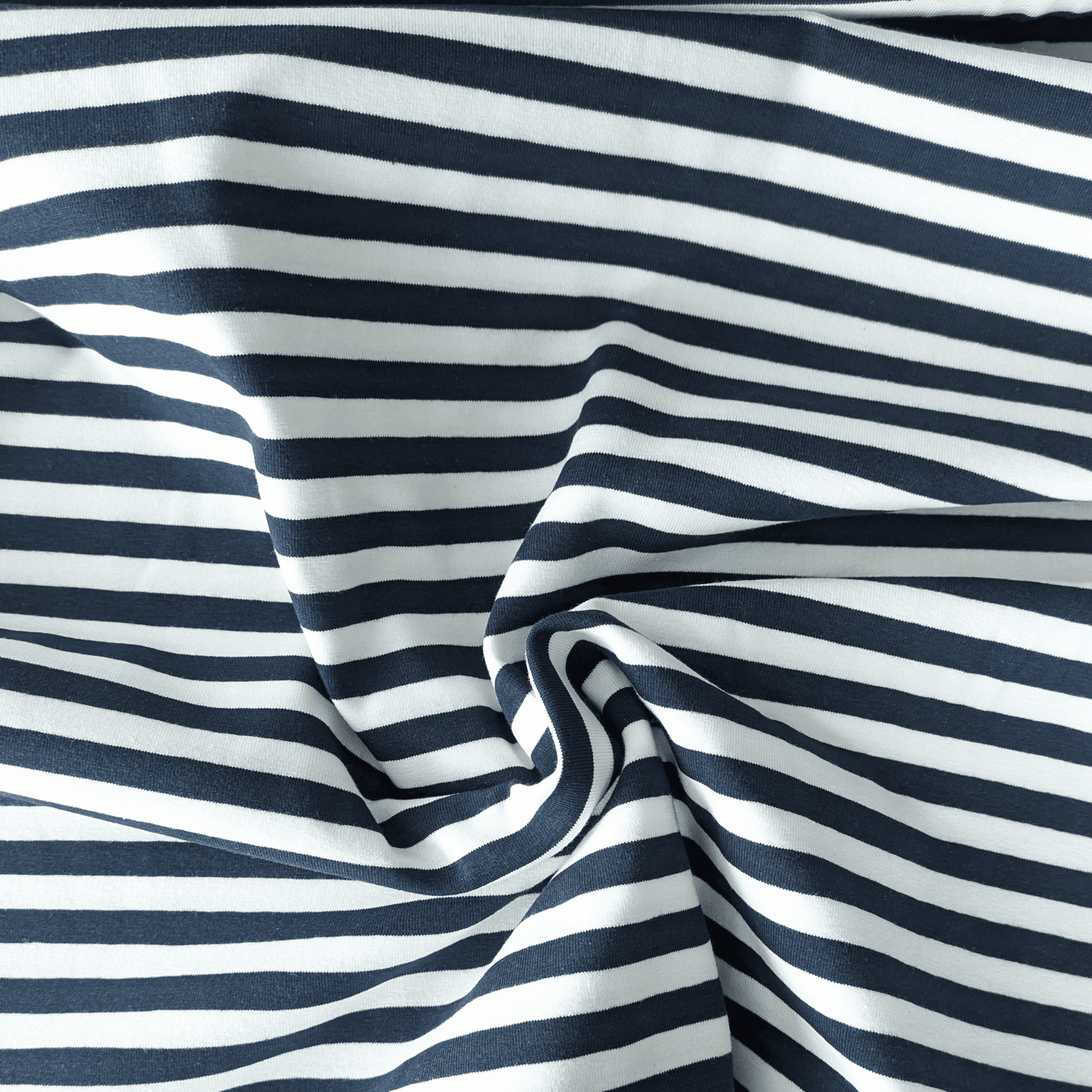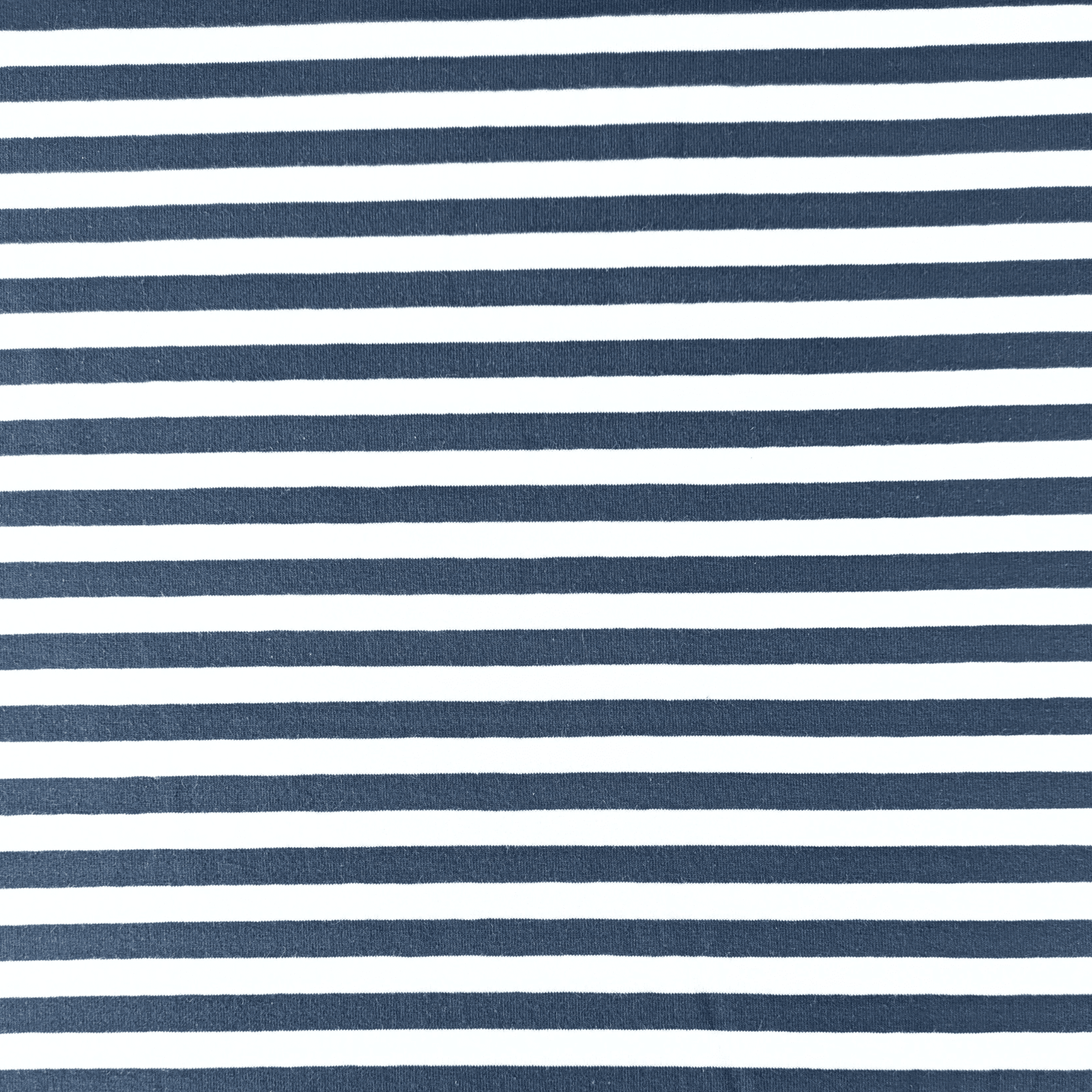 Yarn Dyed Stripe Navy & White Cotton Jersey Fabric 150cm Wide. Top quality yarn dyed stripe jersey. Makes stripe matching easier. 9mm wide stripes, across the piece.